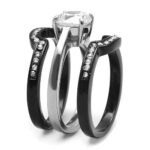 Women, Ring, Stainless Steel, Two-Tone IP Black (Ion Plating), Cubic Zirconia, Clear, Round